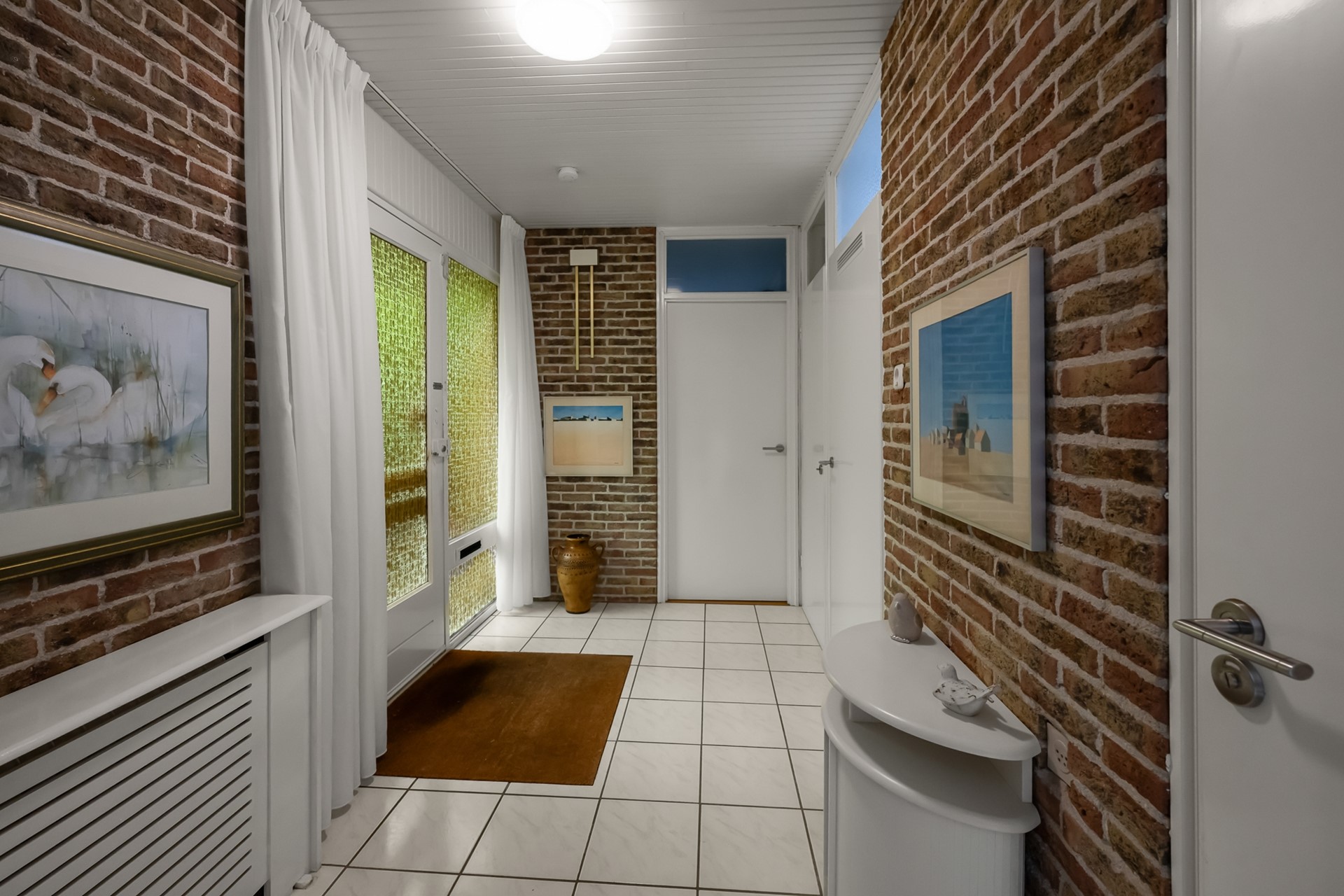 De open haard is momenteel dichtgemaakt, maar kan eenvoudig weer in gebruik worden genomen door een pijp op het dak aan te sluiten. Via de grote schuifpui is er direct toegang tot de tuin, waardoor je optimaal kunt genieten van het binnen-buitenleven. De schuifdeur bij de keuken is voorzien van een hor.