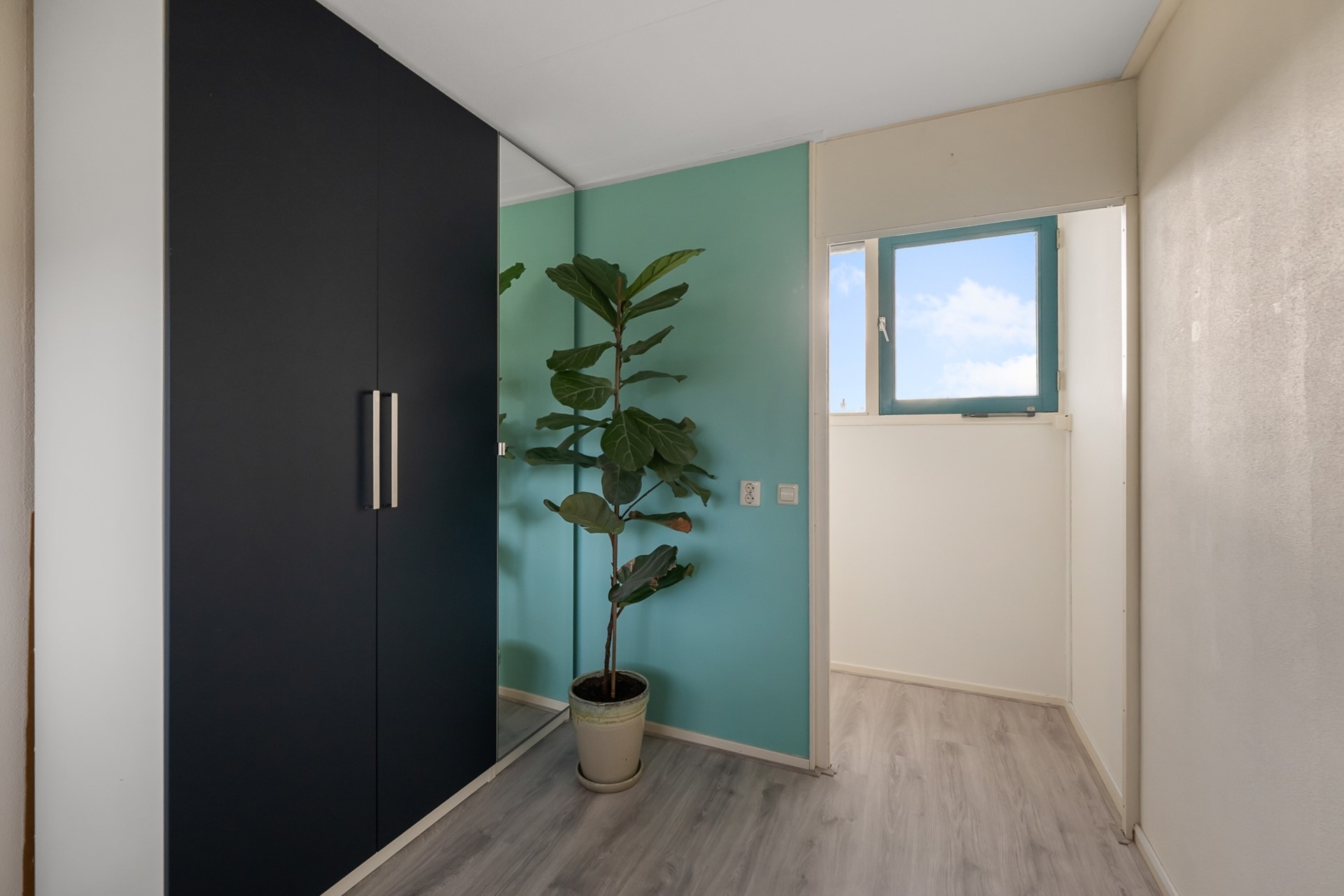 De tweede slaapkamer aan de voorzijde is eveneens royaal en licht. Grote ramen zorgen voor veel daglicht en een prettige, open sfeer.