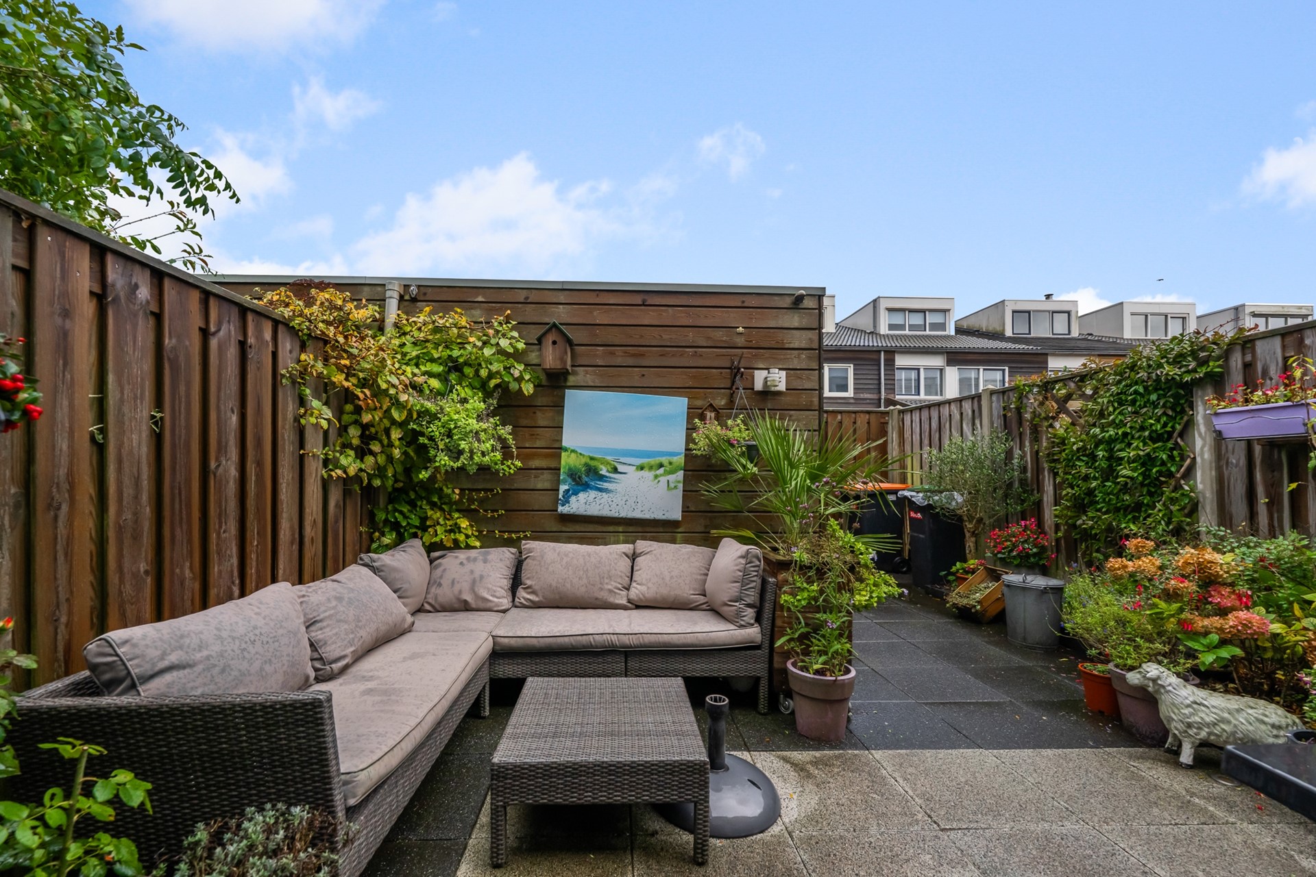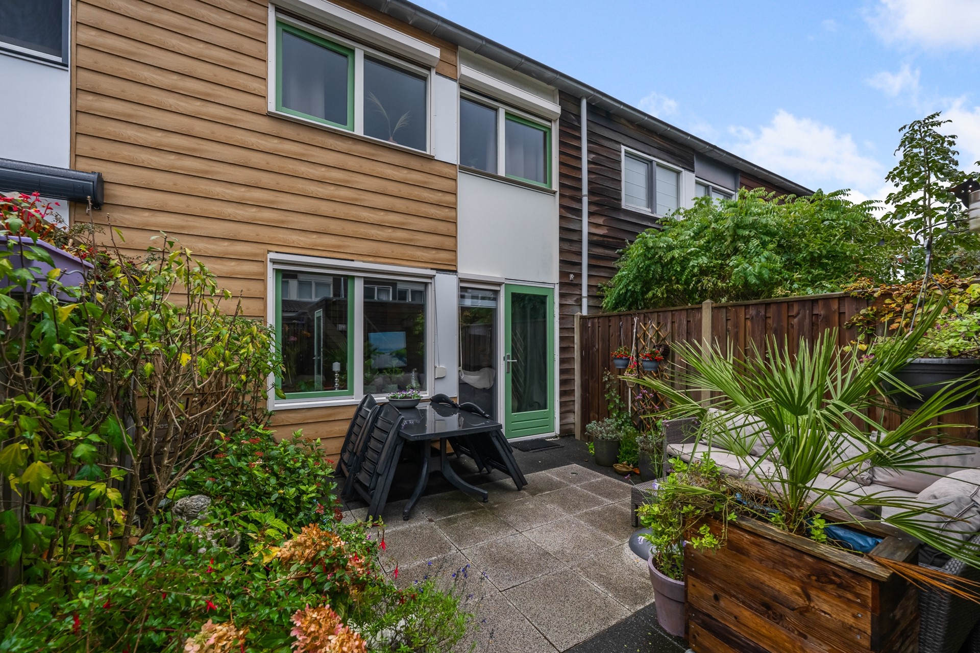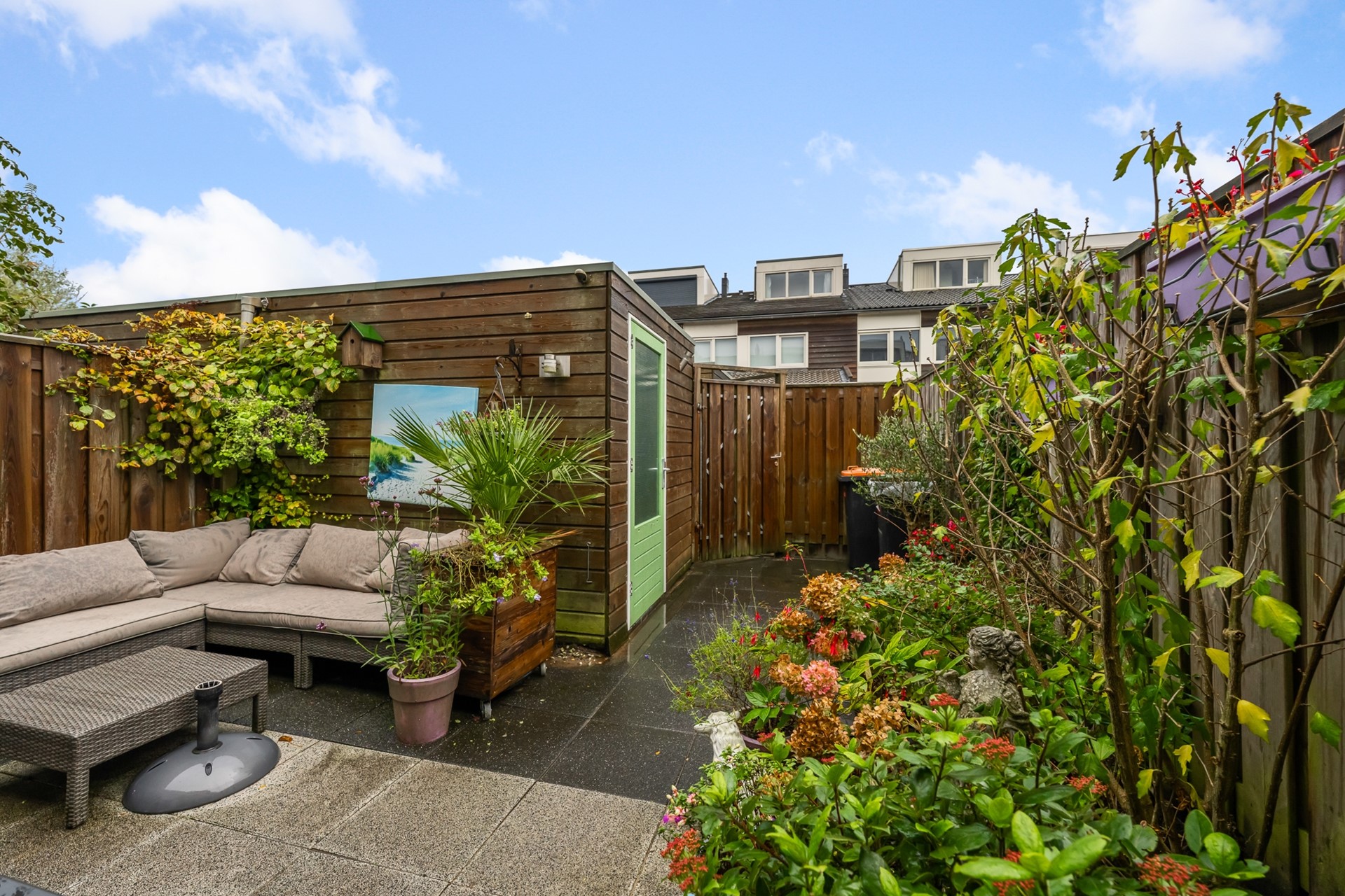 • Bestrate en beplante tuin met achterom