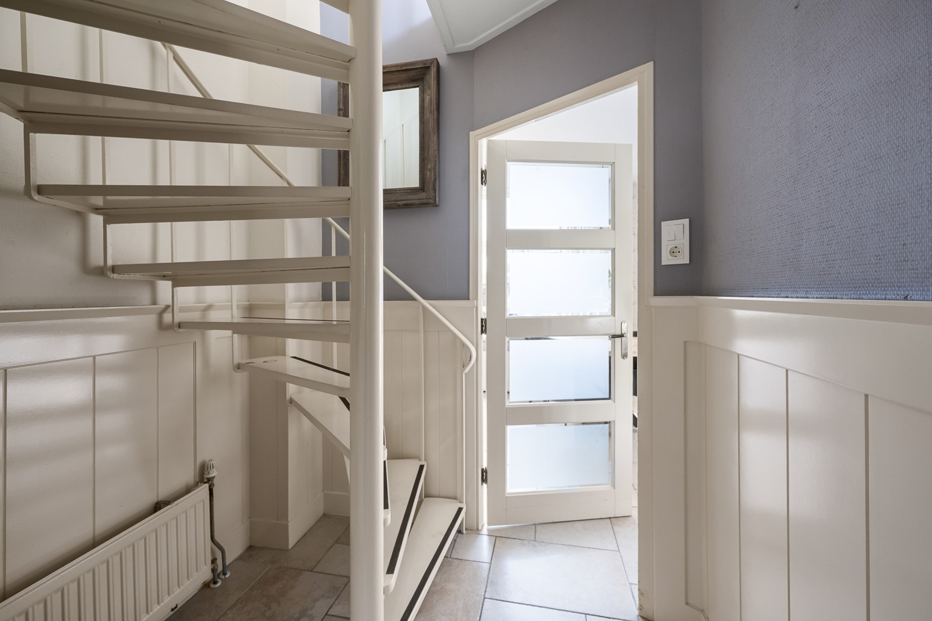 Je komt binnen via de entree/hal waar direct een toilet en meterkast te vinden zijn. Vanuit de hal stap je de woonkamer binnen, een heerlijke, lichte ruimte. In de winter geniet je van de warmte en sfeer van de open haard. De half open keuken is voorzien van diverse inbouwapparatuur. In de keuken is toegang tot een praktische bijkeuken, ideaal voor extra bergruimte, de wasmachine, droger en de cv-installatie. Vanuit zowel de keuken als de woonkamer heb je toegang tot de zonnige achtertuin , perfect voor een kop koffie in de ochtendzon of een gezellige borrel in de avond.